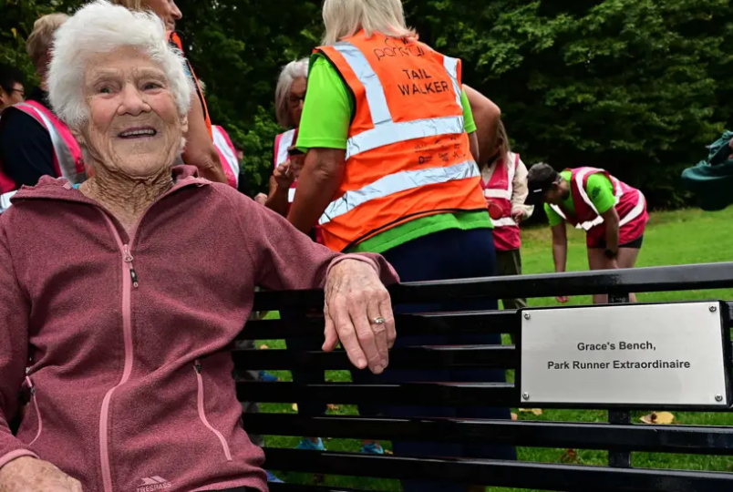 Turns out they weren’t there for my underwhelming parkrun debut. They were filming a woman named Grace Chambers, who, wait for it, became the oldest person ever to complete 250 parkruns. She’s 97 years old. She did it four weeks after keyhole heart surgery.