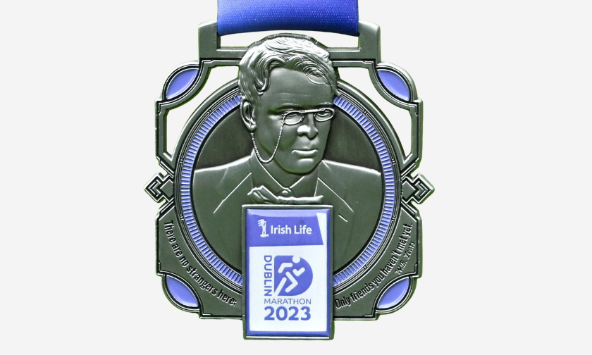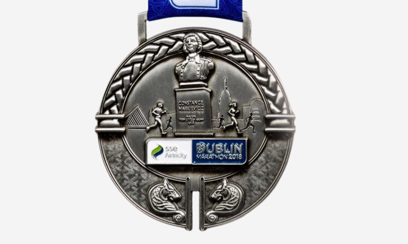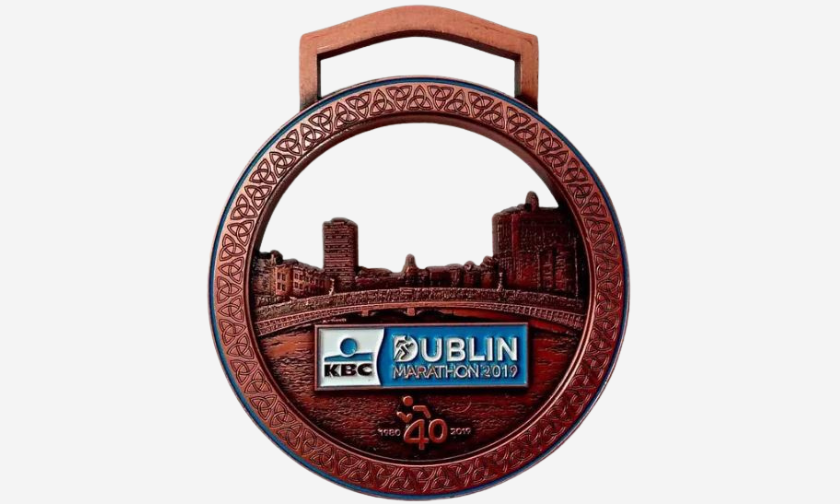 Designed by NCAD student Myla Sirvyte, this medal broke new ground with a rotating disc and intricate depictions of Dublin landmarks along the route.