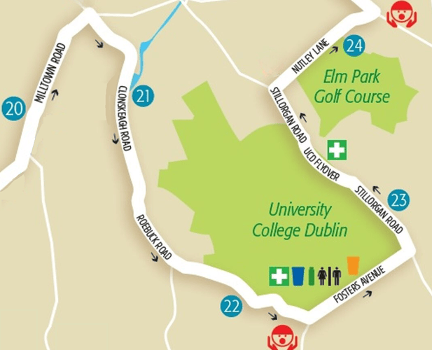 • Landmarks: Heartbreak Hill, Foster’s Avenue, UCD Flyover, RTÉ