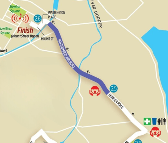 You’ll turn left onto Merrion Road, also known as the Embassy Belt, where you’ll pass gaffs so posh you'll wonder if you should've brought a tuxedo. Merrion Road is your near straight shot to the finish line! Just a little further, you’ll wave at the RDS and the 25 mile mark as if they were old friends who kept you company through this epic saga.